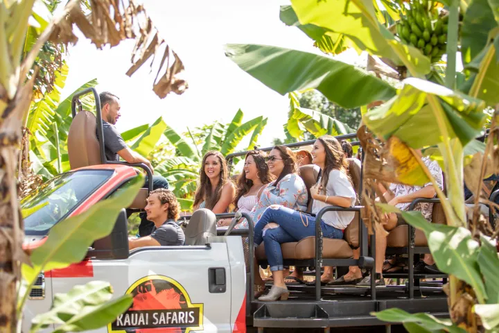 Step into our one-of-a-kind open air rum safari trucks and head out back into the beautiful fruit orchard where you will see exotic fruits like lychee, longan, cashew, and mangos growing on the trees. Later in the tour you might even taste some of these fruits in your farm-to-glass cocktail. As we pass through Elmer’s farm, you will get a first-hand look at the papayas and assortment of veggies growing in the fields before they are sold at the local farmer’s market. Hold on tight as we descend down into Kahuna Nui Valley. Here you will disembark the truck for a stroll on a boardwalk through a tropical rainforest to your private oasis to taste the award wining Kōloa rum. After tasting some rum, you will also enjoy our signature Mai Tais. Relax and enjoy your Mai Tai as you hear the river flowing past our Jungle Bungalow.